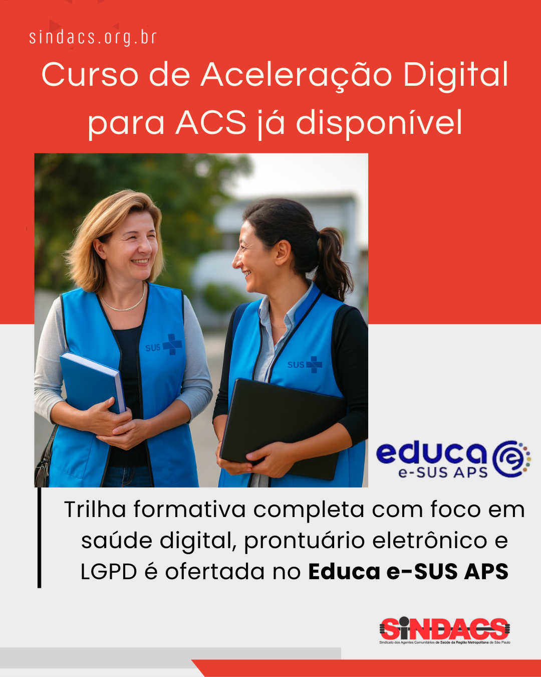 📣 Novidade para os Agentes Comunitários de Saúde! Agora está disponível, na plataforma Educa e-SUS APS, a trilha formativa completa para ACS: o...
