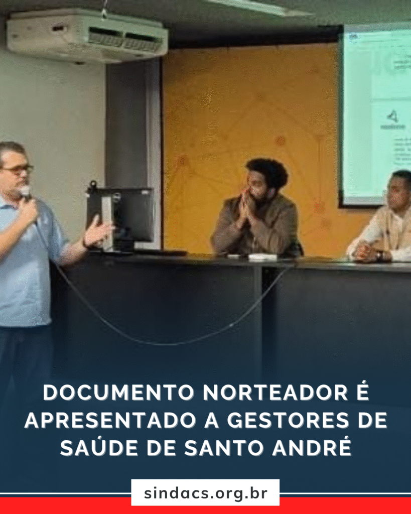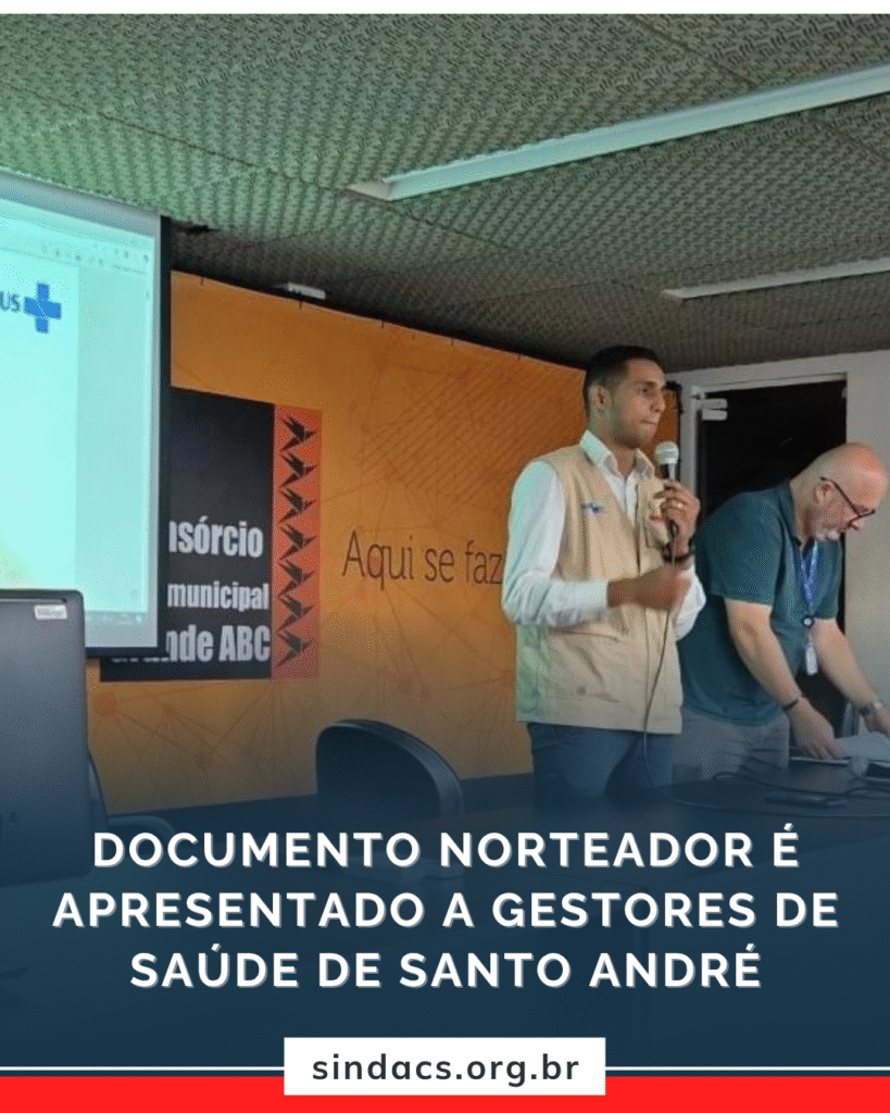 A Diretoria do Sindacs-SP realizou, nesta terça-feira (27/05), no Consórcio Intermunicipal do ABC, a apresentação do Documento Norteador dos Agentes Comunitários de Saúde de Santo André. A iniciativa, desenvolvida em conjunto com a Coordenação de Atenção Primária à Saúde, dá continuidade à implantação do documento lançado em outubro de 2024 na cidade.