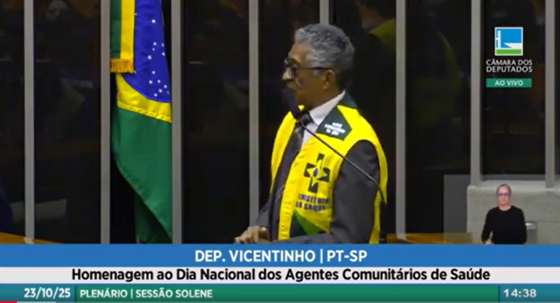 O presidente do SINDACS-SP, Rodrigo Rodrigues, foi homenageado pelo Deputado Federal Vicentinho (PT/SP) durante sessão solene em celebração ao Dia Nacional dos Agentes Comunitários de Saúde e dos Agentes de Combate às Endemias.