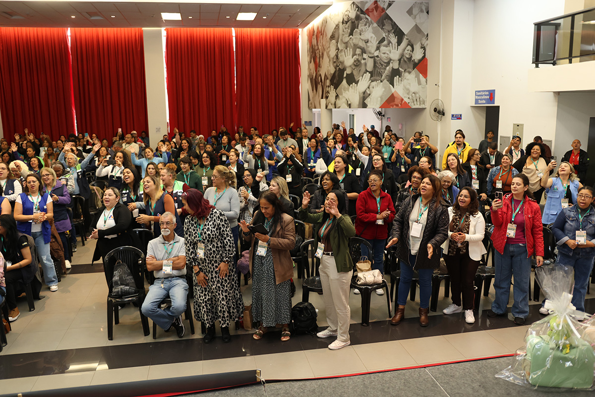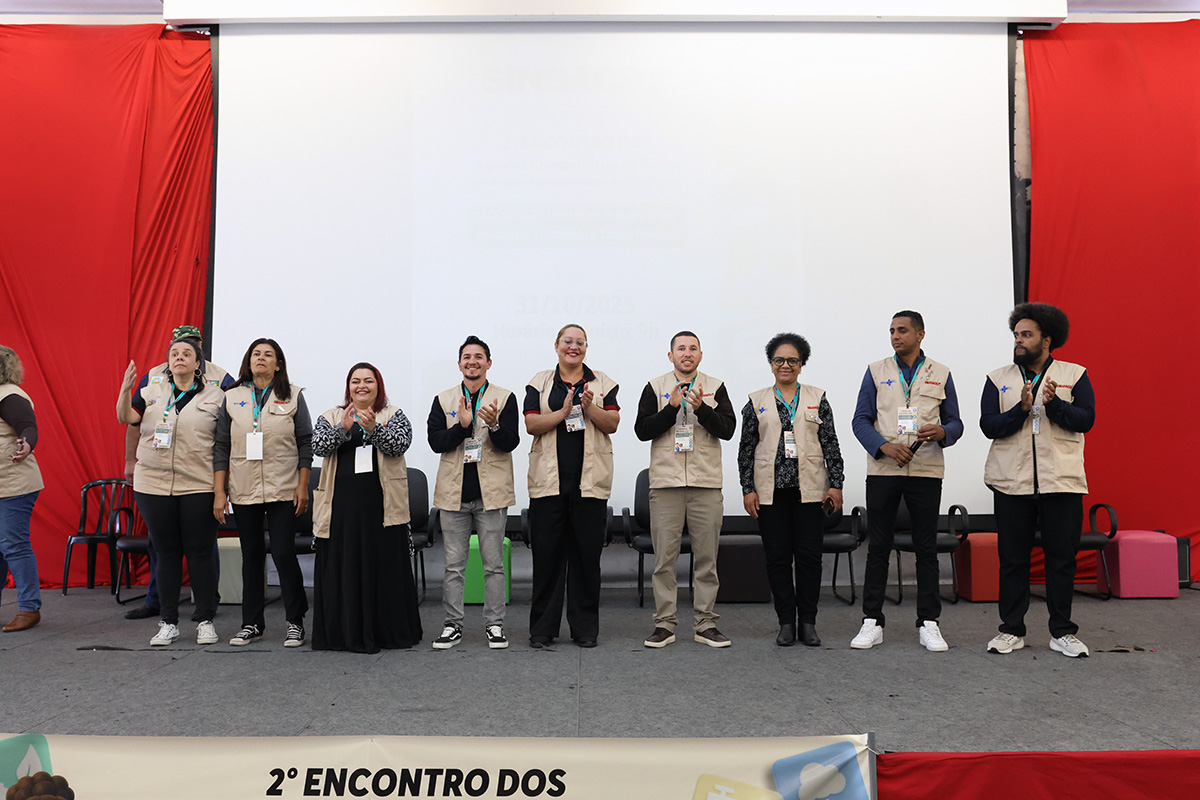 Ao final da programação, todos os ACS representantes de suas unidades de trabalho puderam retirar e levar para suas equipes os brindes destinados aos associados do Sindacs-SP. Neste ano, o kit contou com uma agenda personalizada do ACS e pins oficiais das campanhas, reforçando o reconhecimento, a identidade profissional e a valorização da categoria.